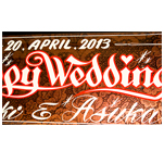 ウエディングボード・ウエルカムボード 画像をクリックすると拡大します。 ・オーナー様からお持ち込み頂いたスケボーの板にレースの模様を付けて、その上にピンストライプで文字とデザインを描きました。 ・パールを使用することで、見る角度によって発色が変わり薄暗い茶色や明るいオレンジに見えます。